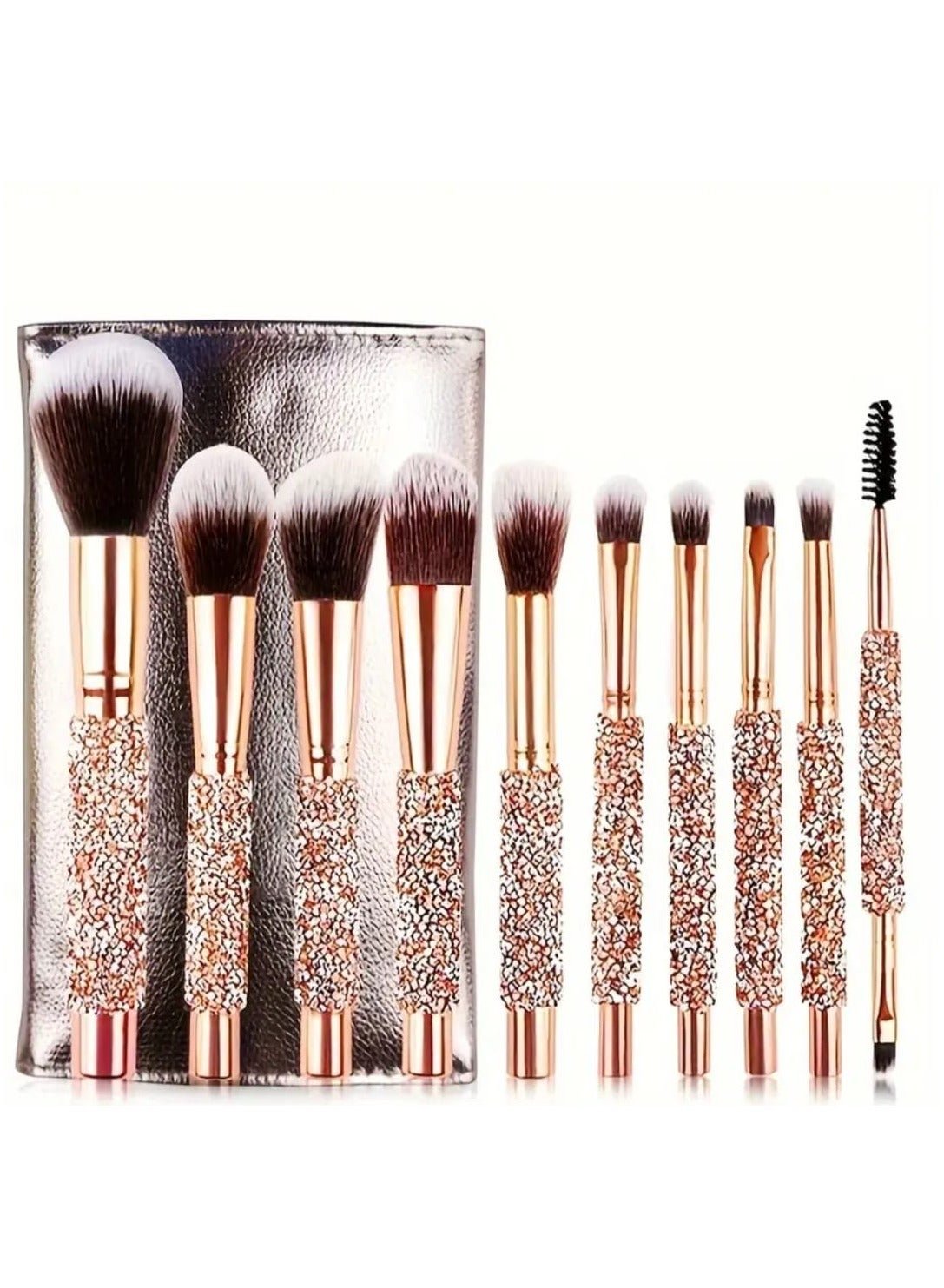 10 Pcs Makeup Brush set With Golden Handle, Foundation, Eyeshadow and Contouring