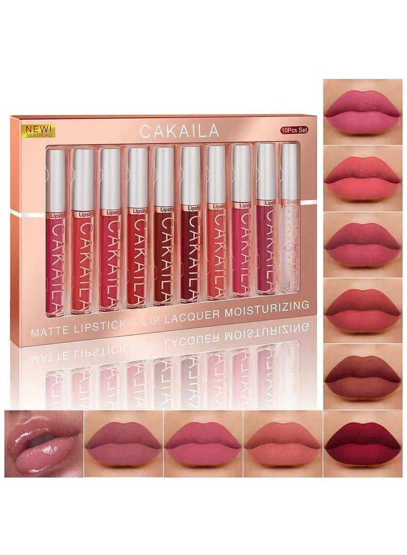 10Pcs Matte Liquid Lipstick Set Contains Smooth Lip Lacquer for Women