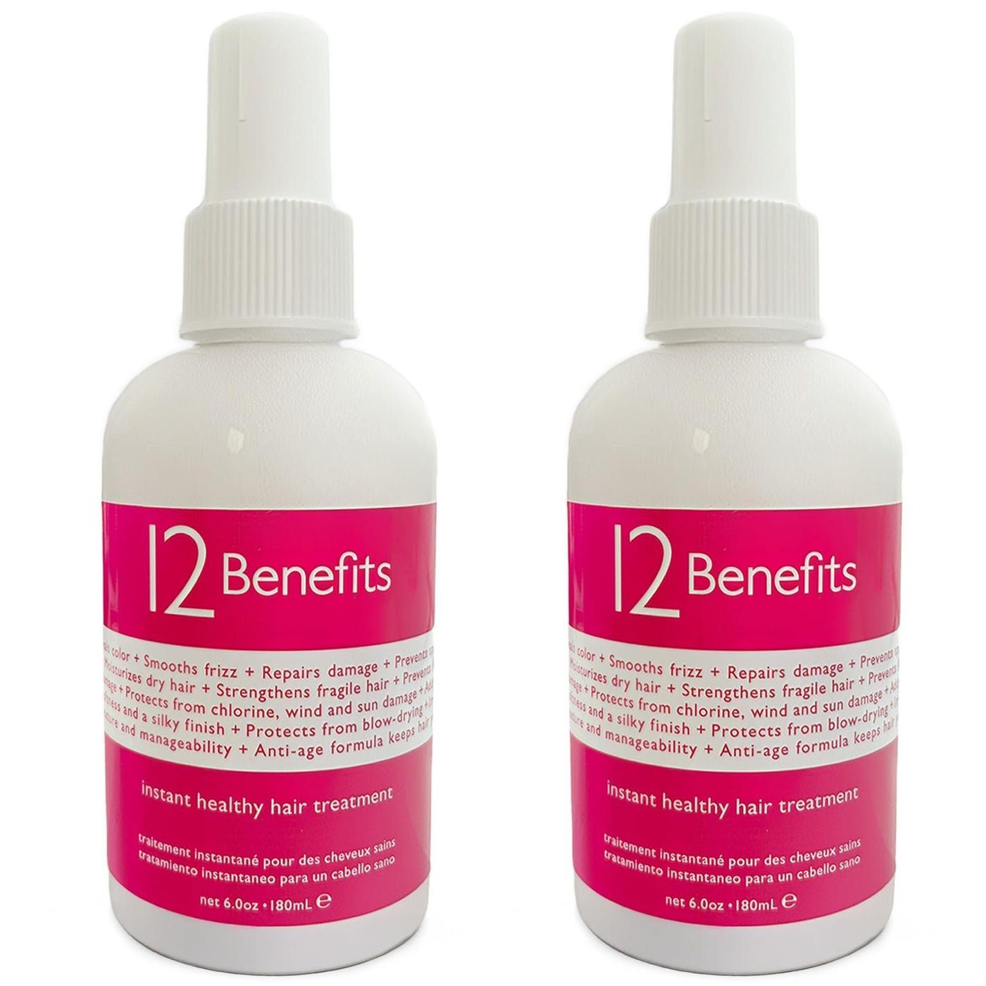 12 Benefits Instant Healthy Hair Treatment, Leave-In Conditioning, Smoothes Frizz, Strengthens & Repairs, Heat Protection Spray, 6 Fl Oz (Pack of 2)