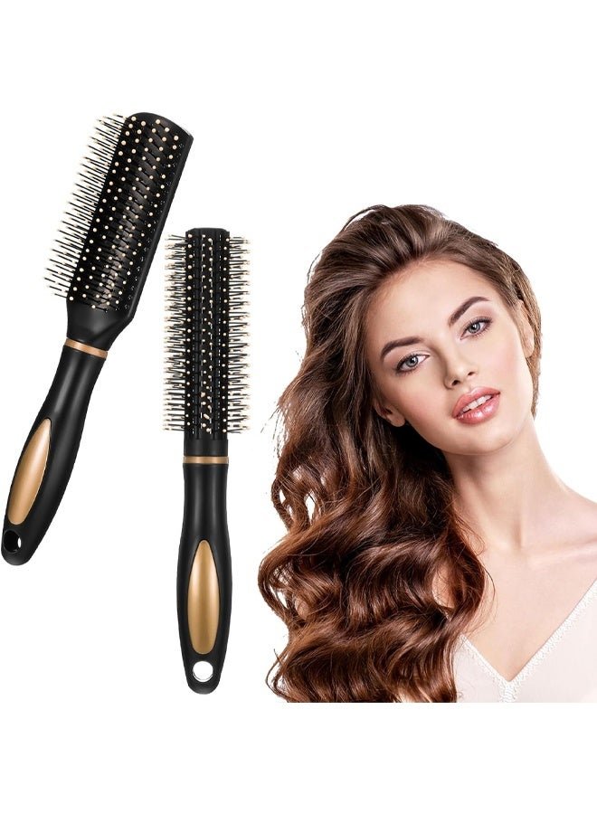 2 Pcs Round Hair Brush, Radial Vent Hairbrush, Curling Brush, Flat-bottomed Comb, Hair Styling Tools, Anti Static Massage Oval Hair Brush Comb for Wet Or Dry Hair’s Detangle Styling Brus