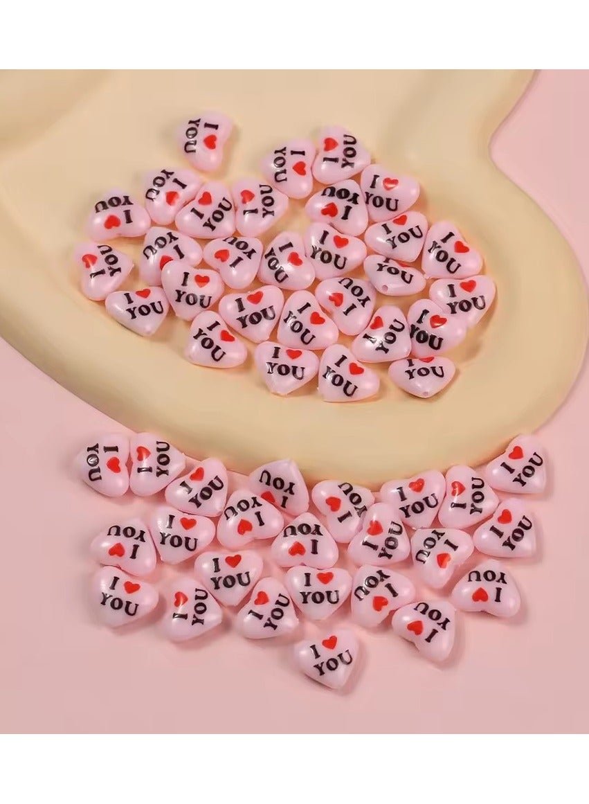 20Pcs I Love You Pink Black White Heart Bead With Hole Bracelet Necklace Earring Chain Jewelry Accessories Kawaii Nail Art Charm