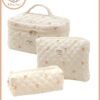 Upgrade your daily routine with 3-Piece Large Quilted Makeup Bag for Women and Girls, Lovely Floral Cotton Cosmetic Bag, Aesthetic Travel Organized Toiletry Bags (Little Red Flower). A top-rated choice in Makeup Brushes & Tools from Khajul.