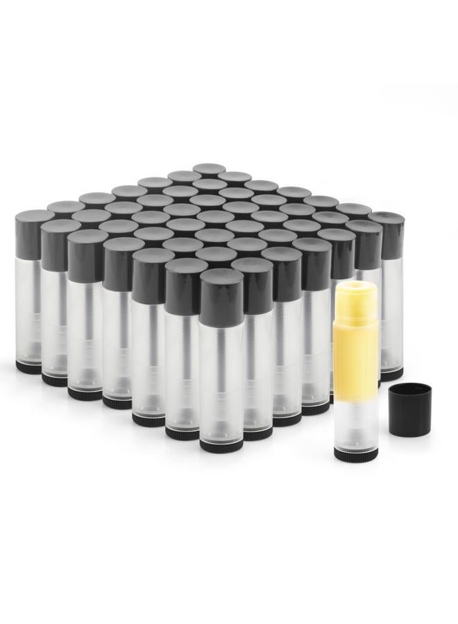 50Pcs 5g Lip Balm Tubes Plastic Lipstick Containers Empty Refillable Twist-up Lip Gloss Balm Filling Stick Clear Tube Holder with Black Cap for DIY Chapsticks Crayon Solid Perfume