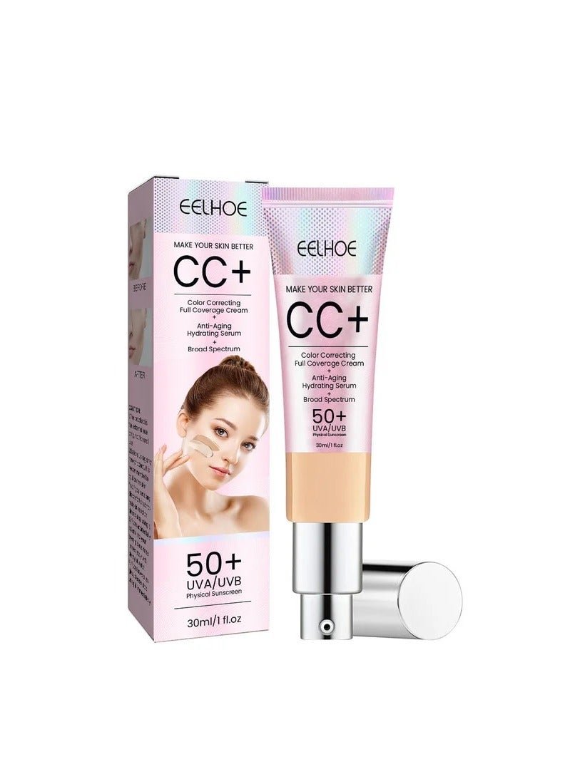CC+ Color Correcting Cream Full Coverage SPF 50+, CC Cream Foundation, Lightweight Hydrating Serum with Full Coverage, Oil Controls and Hydrates Skin, Long-Lasting Matte Color Correcting Cream (Light) 30ml