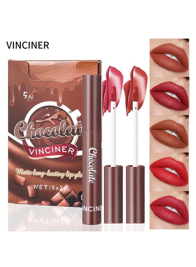 Chocolate Matte Long Lasting Lip Gloss- 5 Colors Nude Lipstick Set Liquid Lipstick- Velvet Lip Gloss Lip Stain Long Lasting Waterproof Nude Pink Lipstick Set for Women Lip Makeup Kits #02