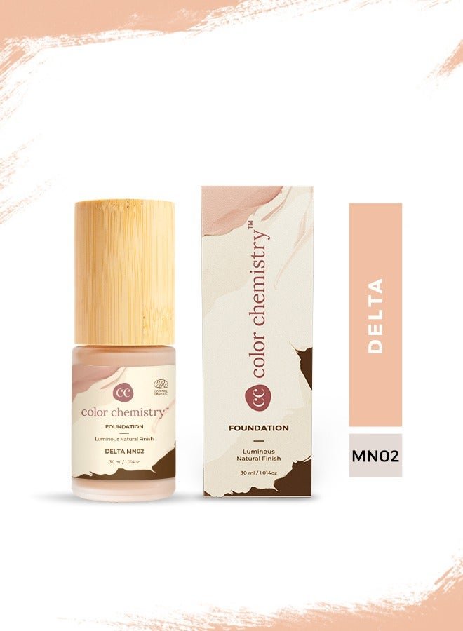 Color Chemistry Delta Liquid Foundation – 30 ml, Enriched With Rosehip Andgreen Tea, For Luminous Natural Finish, Buildable Coverage, And Certified Organic