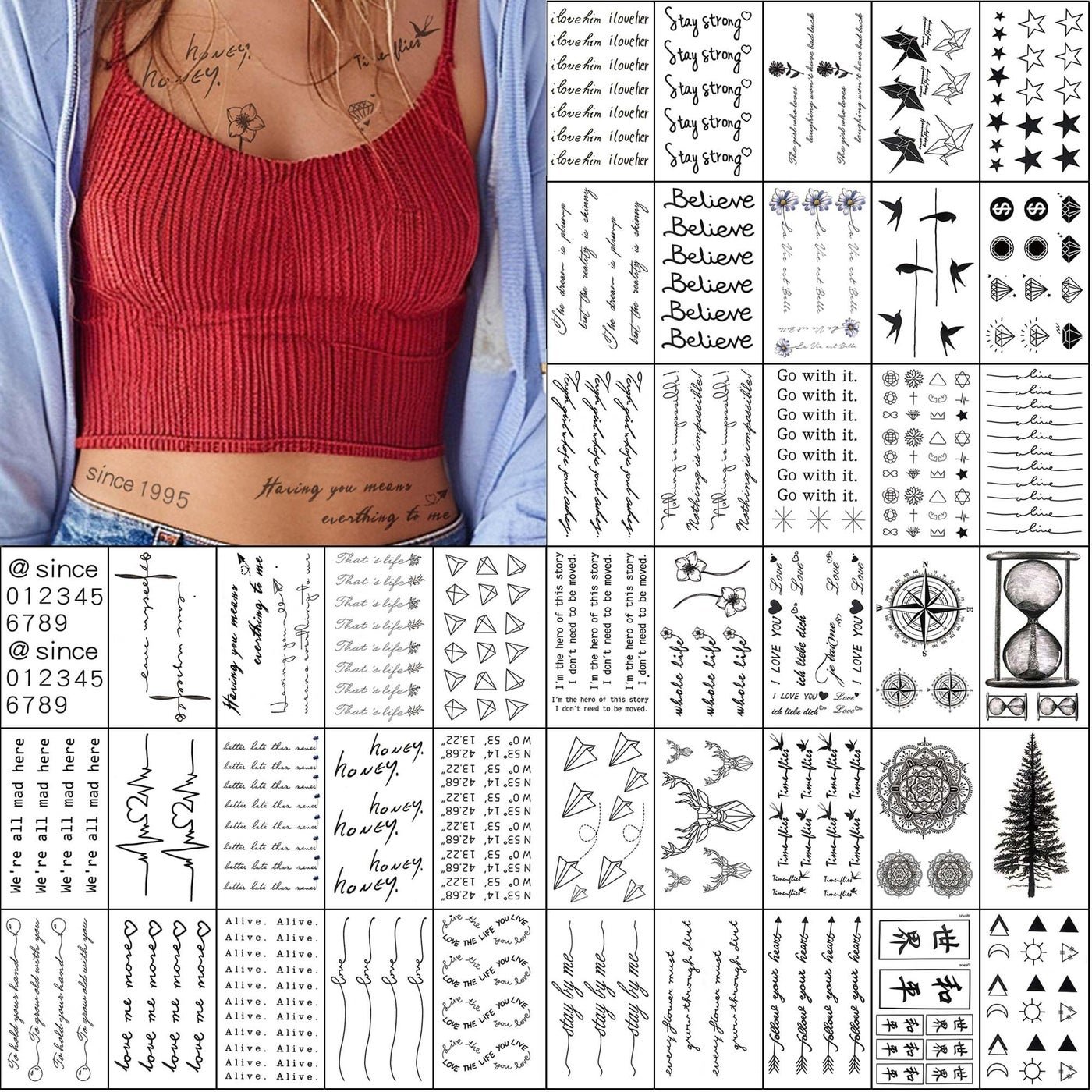 Everjoy Realistic Tiny Temporary Tattoos – 400+ Patterns, 60 Pcs Inspirational Quotes, Words, Lines, Flowers, Leaves, Artworks, Message Tattoos for Women, Men and Adults