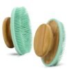 EXCEFORE Food-Grade Soft Silicone Body Scrubber Shower Brush, Non-Slip Bamboo Handle Silicone Loofah, Gentle Exfoliating and Lather Well (Blue)