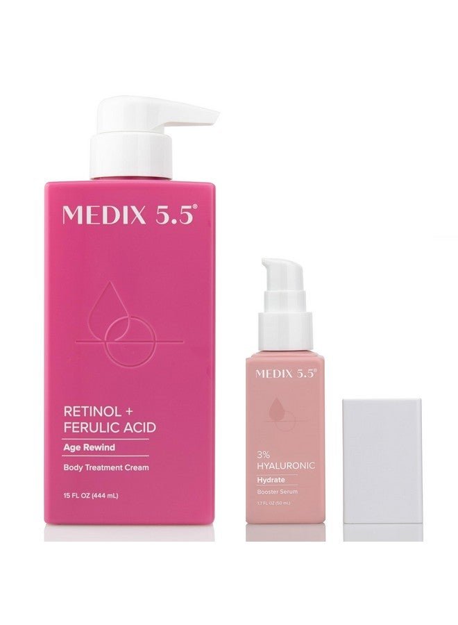 Medix Retinol Body Lotion + 3% Hyaluronic Acid Booster Serum Moisturizer 2Pc Skin Care Set Crepey Skin Care Treatment Retinol Body Cream Retinol Cream Targets Sagging Crepe Skin & Wrinkles 2Pc