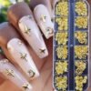 Moon Star Nails Gold Metallic Nail Sequins Charms – 3D Nail Art Tips for Festive Manicures