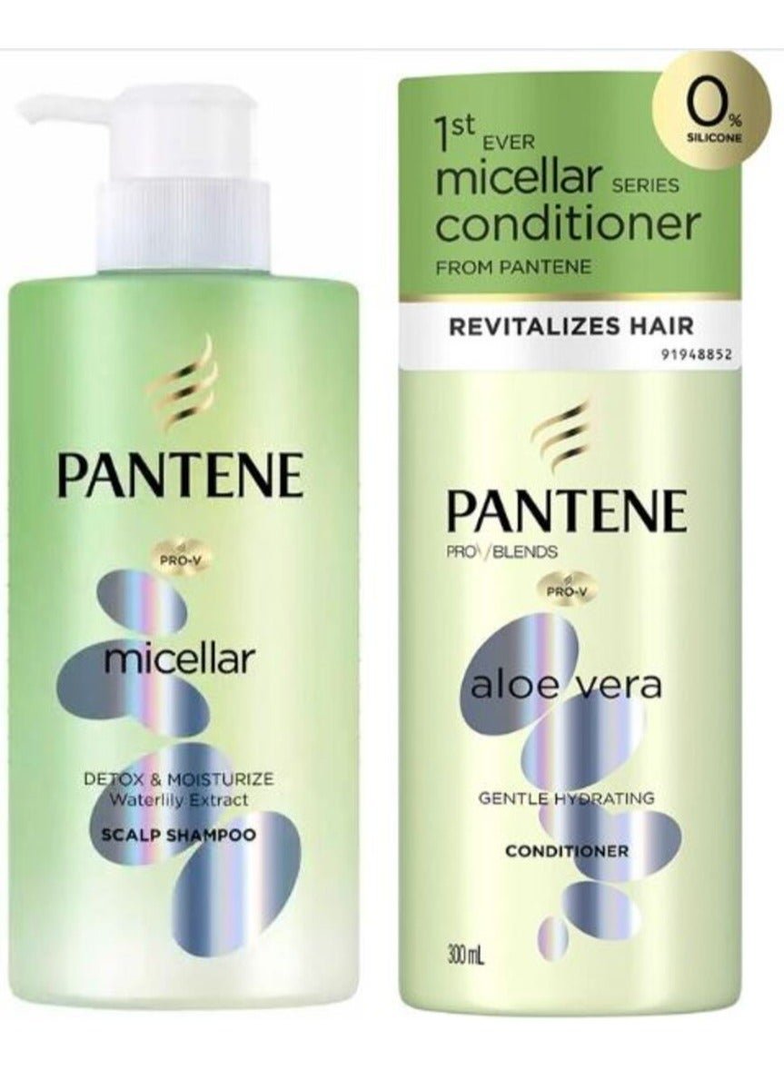 Pantene Micellar Hair Care Set – Detox & Moisture Scalp Shampoo + Aloe Vera Gentle Hydrating Conditioner 300ml + 300ml