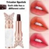 Satin Like Color Holding Tri-Color Lipstick, Three-color lipstick set, long-lasting, non-stick, waterproof, bright red, bright orange, rose red
