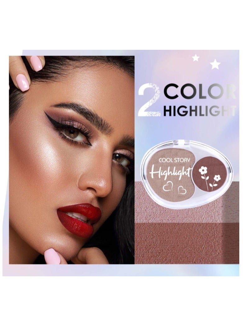 Two Color Glitter Highlighter Powder Palette,3 in 1 Blush and Highlighter Powder Makeup,Waterproof Long Lasting,Highly Pigmented Face Illuminator for a Glowing Look 1 Pcs Palette Color Bronze